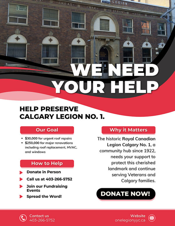 In 1927, the premises were officially designated as the Calgary (Alberta No. 1) Branch of the Canadian Legion. Later, by Royal Assent in 1960, it became part of The Royal Canadian Legion, reflecting its enduring commitment to supporting veterans and their families.